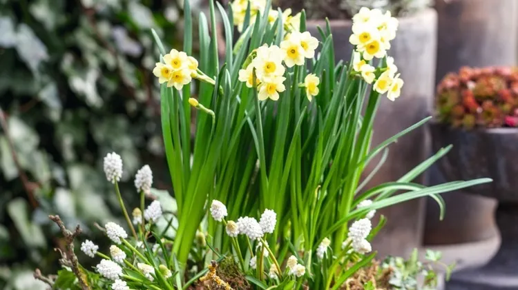 Krans blommande påskfint ute och inne