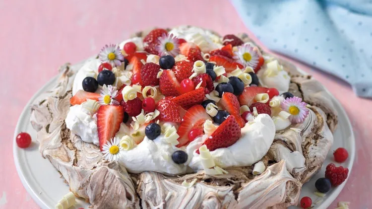 Läckert med maräng och vaniljglass, som en elegant marängsviss! 8 BITAR1 TIMME30 MINUTER3 äggvitor 2 dl strösocker 2 tsk majsstärkelse Topping 1½ dl vispgrädde ½ liter vaniljglass 250 g björnbär 125 g