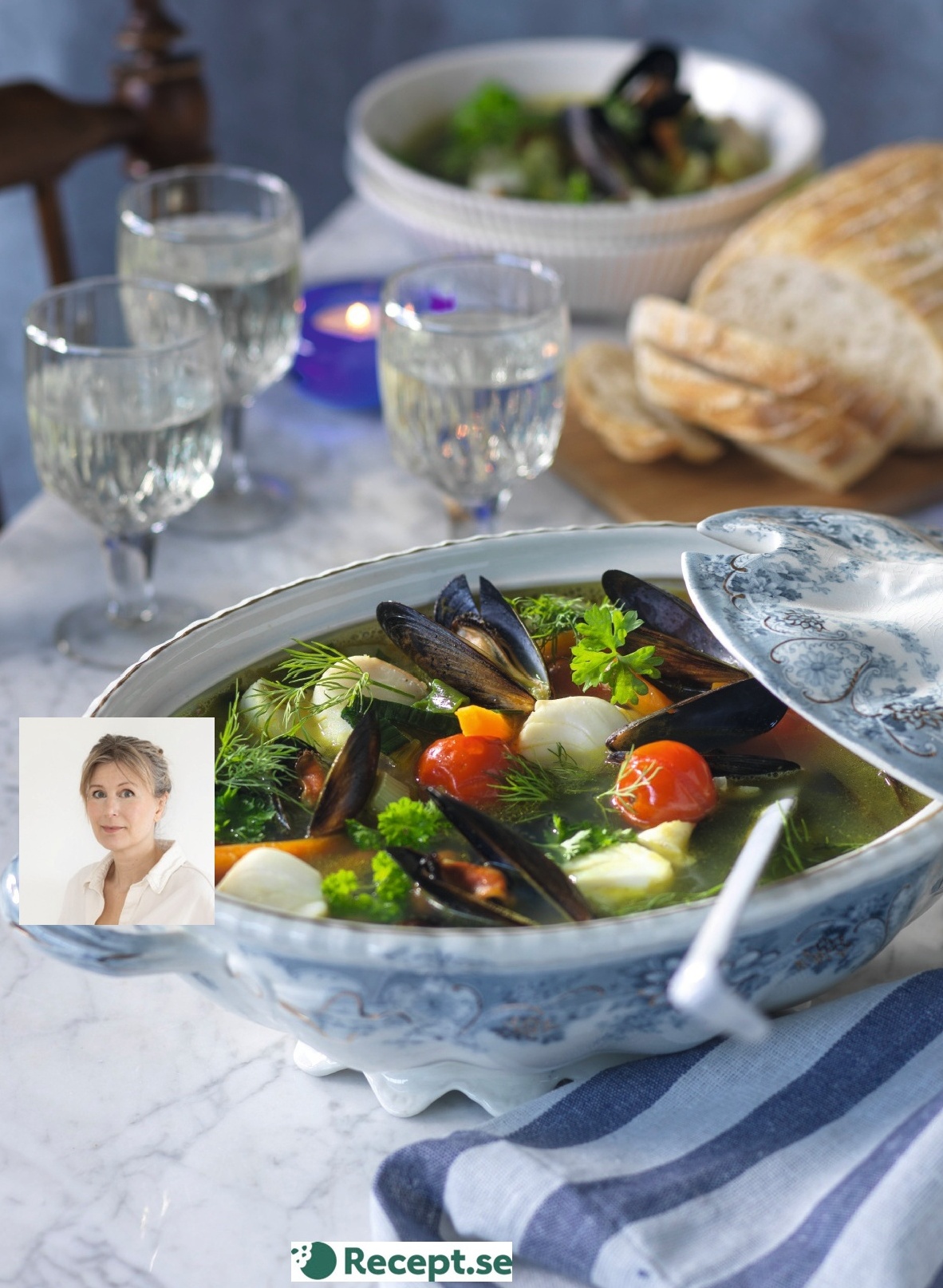 Ny favorit med lax, kantareller och räkor. Såsen har mild smak av pepparrot. 4 portioner 50 minuter 1 purjolök 250 g kantareller 1 fänkål 2 msk smör 4 bitar laxfiléer à 120 g 200 g körsbärstomater SÅS