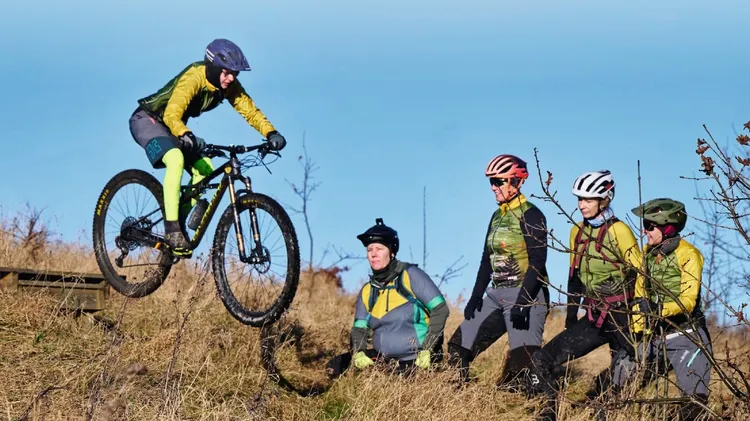 Solen speglas i vattenpölarna längs mountainbikebanan utanför skånska Billesholm. Det är lerigt och kladdigt när Albertinorna, ortens damgrupp i mountainbikecykling, kör ett träningspass längs den krä