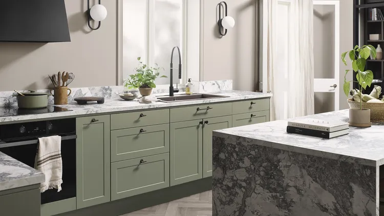 Mjuka former, ljusa färger och bänkskivor i gedigen marmo