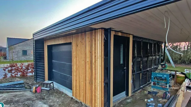 Dubbelgarage i trä och metall
