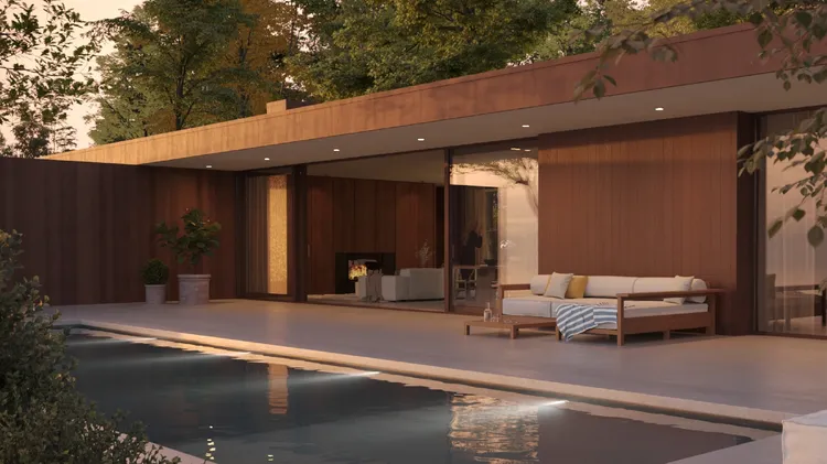 I huset Small från Henrik Schulz Home är allt planerat för att skapa rymd, ljus och flöde. Den öppna planlösningen gör att ljuset från de stora glaspartierna vandrar genom hela huset och suddar ut grä