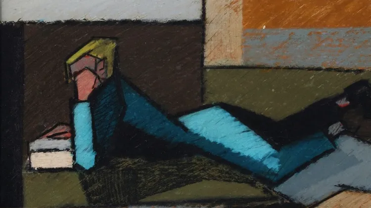 1. GEOMETRISKA FORMER. Färglitografin Olympia är signerad av KG Nilsson (f 1942) 1985. Nilsson utforskade färgens inverkan på formen och gav ut boken Färglära 1982. (Dalarnas Auktionsbyrå) Utropspris