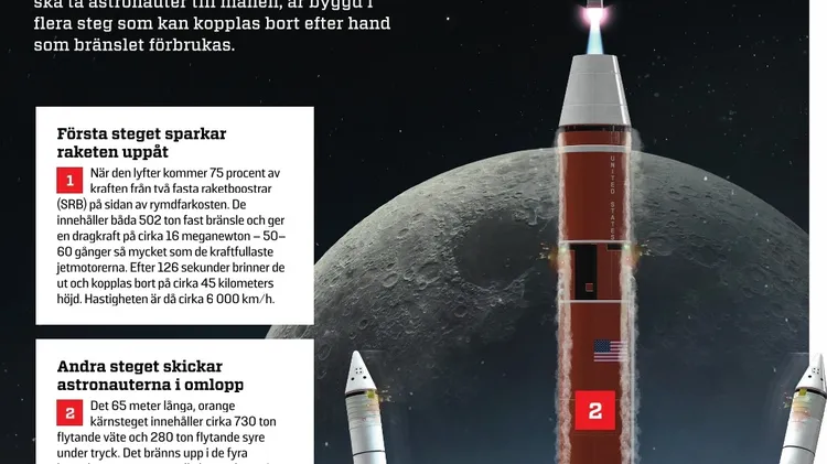 Tre steg ger månraketen ett lyft