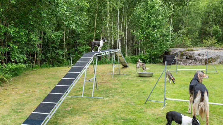 Skogsvägen dammar, det doftar av tallkåda och surrar i sommarvärmen. Efter en lätt knackning på dörren råder ingen tvekan om att detta är rätt adress. Inifrån huset hörs exalterade skall. Viftande sva