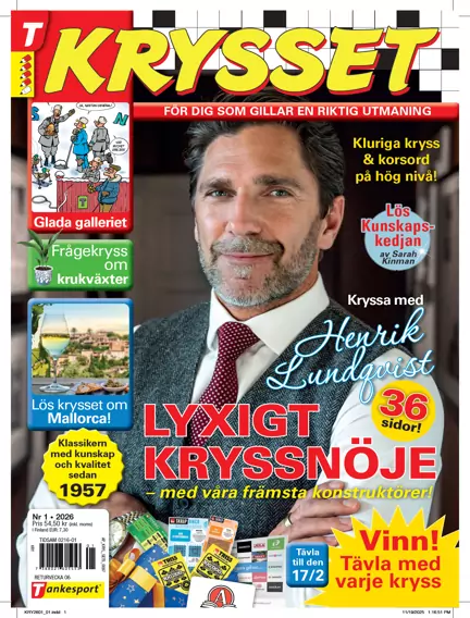 Är Sveriges äldsta krysstidning och kom ut med första numret 1957 - en riktig klassiker! Nutid är lika viktigt som nostalgi i Krysset, som har en väl avvägd blandning av humor och kunskap. Här finns bildkryss och korsord som utmanar hjärna, ordkunskap och allmänbildning. Många timmars underhållning utlovas varje nummer. 12 utgåvor per år. Svårighetsgrad 4 pennor.