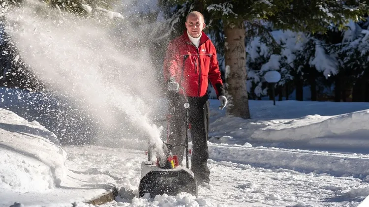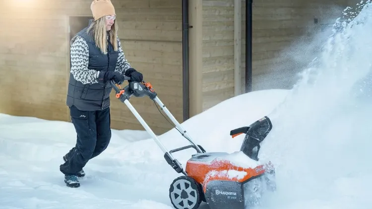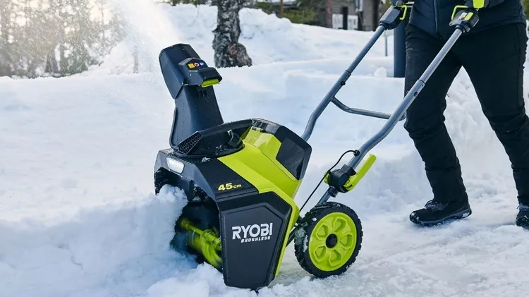 Makitas batteridrivna snöslunga gräver sig fram genom snön med självför