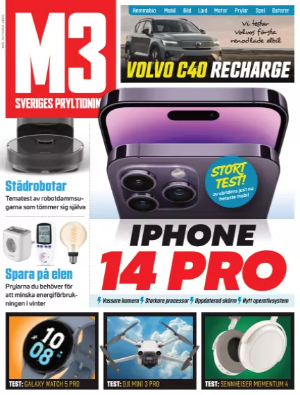 Stort test av Apples flaggskepp Iphone 14 Pro och Pro Max * Reportage: Varför älskar vi att läsa om dåliga nyheter online? * Test: Ngenic Tune * Test: Dyson V12 Detect Slim Absolute * Test: JBL Live Pro 2 * Tematest: Självtömmande städrobotar * Test: Samsung Galaxy Watch Pro 5 * Test: Nokia T10 * Test: Sennheiser Momentum 4 * Test: HP Spectre X360 14 * Test: Samsung Galaxy Z Fold 4 * Test: DJI Mini 3 Pro * Test: Huawei Freebuds Pro 2 * Test: Switchbot Hub Mini * Motor: Hyundai Tuscon * Motor: Volvo C40 Recharge * Motor: Drax Legend * Gaming: The Last of us: Part 1 * M3 Rekommenderar * Plus mycket mer...