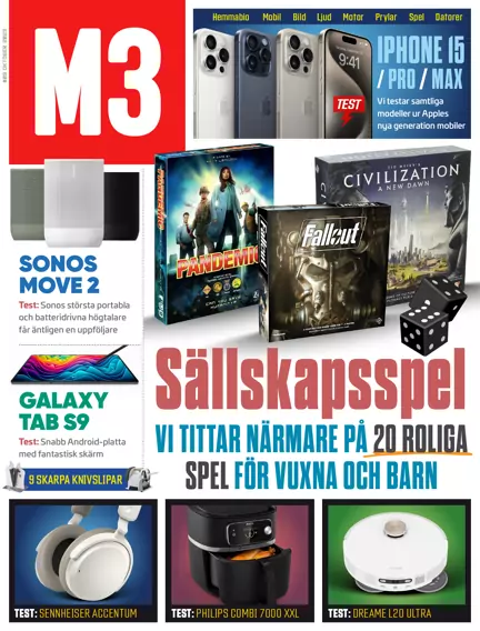 Stort test av Apples senaste mobiler – Iphone 15 och Iphone 15 Pro * Vi har kollat in höstens hetaste sällskapspel för både vuxna och barn * Test: Sonos Move 2 * Test: Samsung Galaxy Tab S9 * Test: Ultimate Ears Epicboom * Test: Marshall Motif II ANC * Test: Sennheiser Accentum * Test: Xiaomi 13T Pro * Test: Dreame L20 Ultra * Test: Philips Airfryer Combi 7000 XXL * Test: Skullcandy Smokin buds * Test: Ugreen Nexode 300W * Test: Logitech G Yeti GX * Motor: Landrover Defender 75th Edition * Motor: Mercedes EQE 500 * Motor: Acer ES Series 5 * Motor: Gaming Logitech G Cloud * Gaming: Forxa Motorsport * Gadgets: Knivslipar * M3 Rekommenderar * Plus mycket mer...