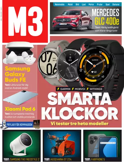 Test av tre heta smartklockor från Garmin, Mobvoi och Withings * Feature: AI-skapad musik är här för att stanna * Test: Samsung Galaxy Buds FE * Test: Fairphone 5 * Test: Husqvarna ST 224 * Test: Samsung The Freestyle Gen. 2 * Test: Xiaomi Pad 6 * Test: Steelseries Alias Pro * Test: Homewizard Wifi P1 * Test: Samsung Bespoke Jet AI * Test: Ecovacs Deebot X2 Omni * Test: Dreame Z10 Station * Motor: Mercedes GLC 400e * Motor: Ford F150 * Motor: Hyundai Kona Hybrid * Gaming: Playstation Portal * Gaming: EA Sports WRC * Gadgets: Coola prylar för din hemmabio * M3 rekommenderar * Plus mycket mer...