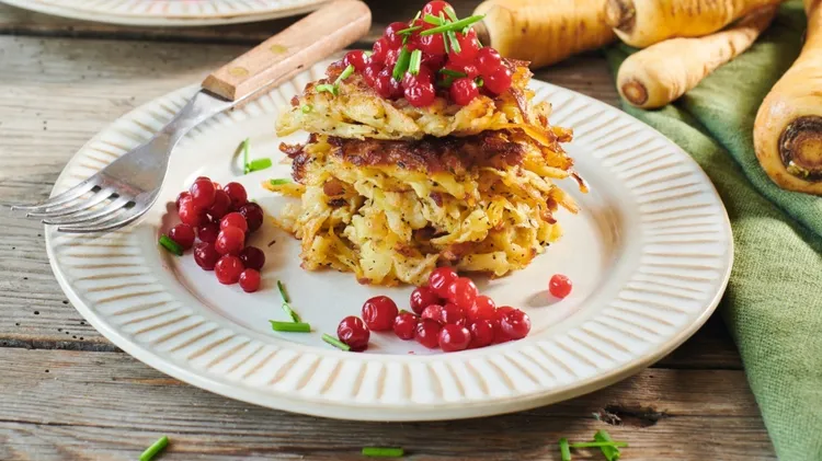 Om palsternackan är tvättad och ren så behåll skalet på. Detta gäller alla rotfrukter – de behåller sin näring bättre då och det blir mindre svinn. 4 portioner 20 minuter 300 g potatis300 g palsternac