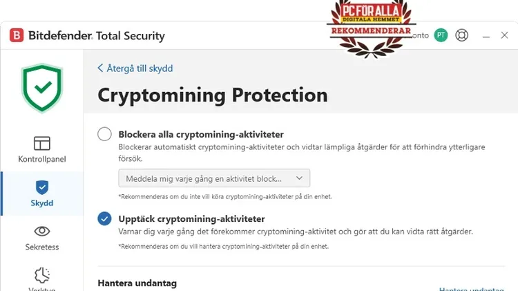 Även det enklaste av Bitdefenders säkerhetspaket har fler funktioner än många dyrare konkurrenter. Trots ett superlativ som ”Total” så är det här paketet det billigaste och enklaste av tre nivåer, sed