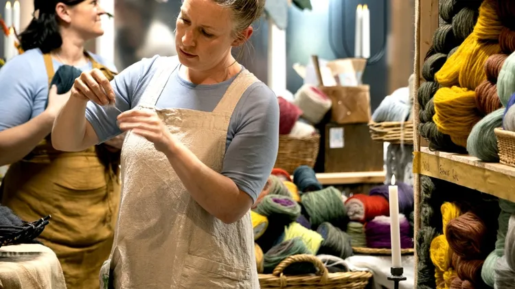 Lutad mot en av de antika sofforna i nya butiken Närvaro i Tidaholm berättar Caroline Henkelius historien om hur det hela startade. Caroline som börjat sticka några år tidigare upplevde olika allergis