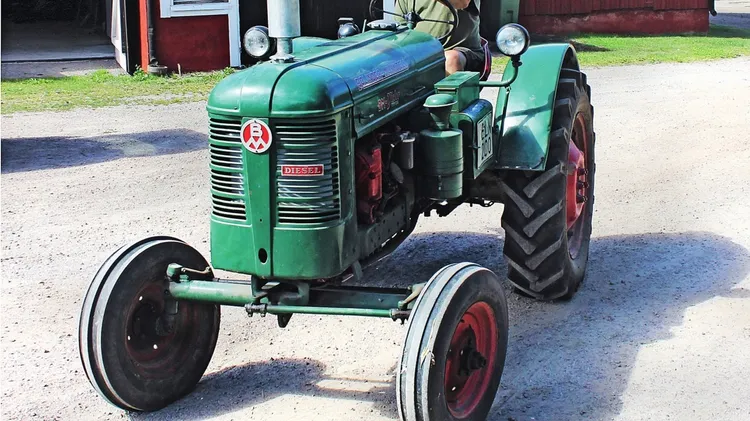 Redan i Bröms, orten där Brömsebrofreden med Danmarkundertecknades 1645, ser jag de första veteranerna. Ola Nilsson på Bröms gård använder fortfarande sin David Brown 996, inköpt ny till gården 1977.